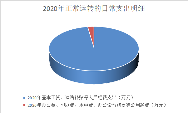 2020年度用于保障迪庆州香格里拉市三坝乡白水台小学机关、下属事业单位等机构正常运转的日常支出1,985.51万元。2019年正常运转的日常支出2,101.93万元2020年较2019年减少5.54%,主要原因是因疫情突发延迟开学,资金使用减少。包括基本工资、津贴补贴等人员经费支出1,939.48万元,占基本支出的97.68%。办公费、印刷费、水电费、办公设备购置等公用经费46.03万元,占基本支出的2.32%