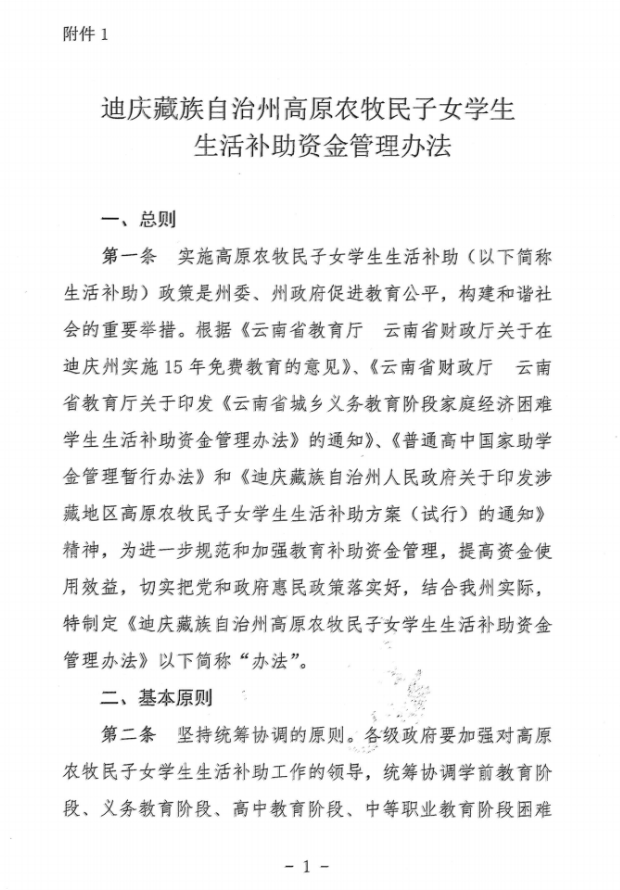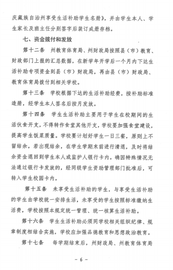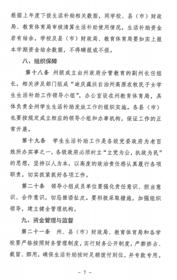香格里拉市教育体育局关于转发《迪庆藏族自治州高原农牧民子女学生生活补助资金管理办法》