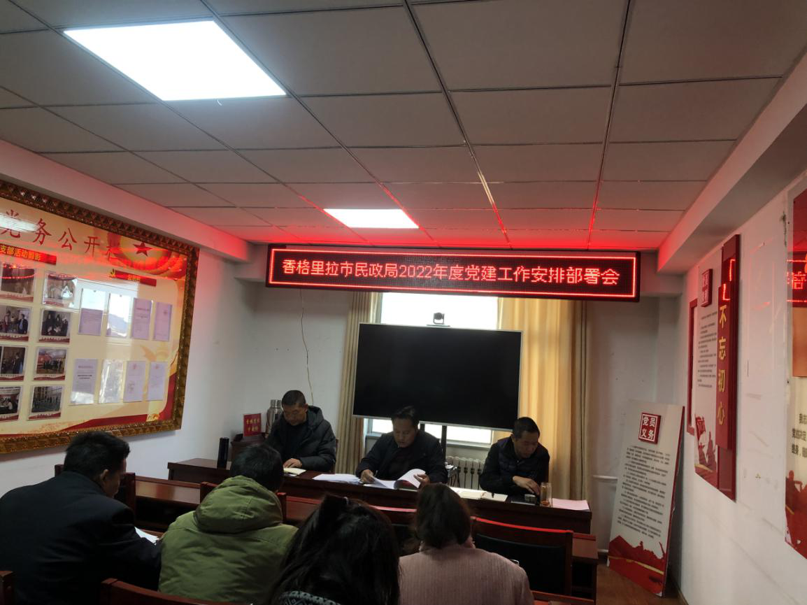 为顺利推进2022年香格里拉市民政局基层党建工作落地落实,以更好的状态迎接党的二十大召开,于2022年2月16日,召开2022年基层党建工作部署会,全局干部职工参加会议。