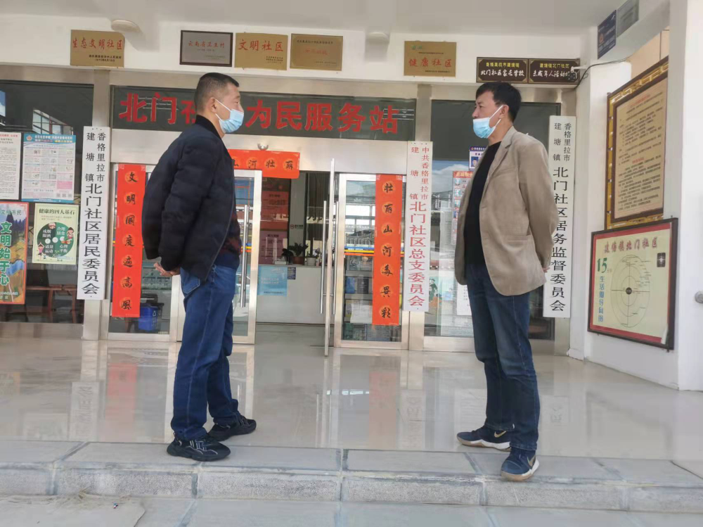2022年3月15日下午,香格里拉市民政局局长楚玉华带队到香格里拉市建塘镇公益性公墓、建塘镇镇北门社区老年人幸福食堂进行疫情防控工作方面的检查,楚玉华局长强调并要求在疫情防控期间工作人员要严格落实好常态化疫情防控措施,做好外来人员登记、扫码、体温测量、消毒工作,制度。疫情期间要做好个人疫情防护,佩戴好口罩,不去人员聚集的场所,为抗击疫情打好防疫攻坚战。