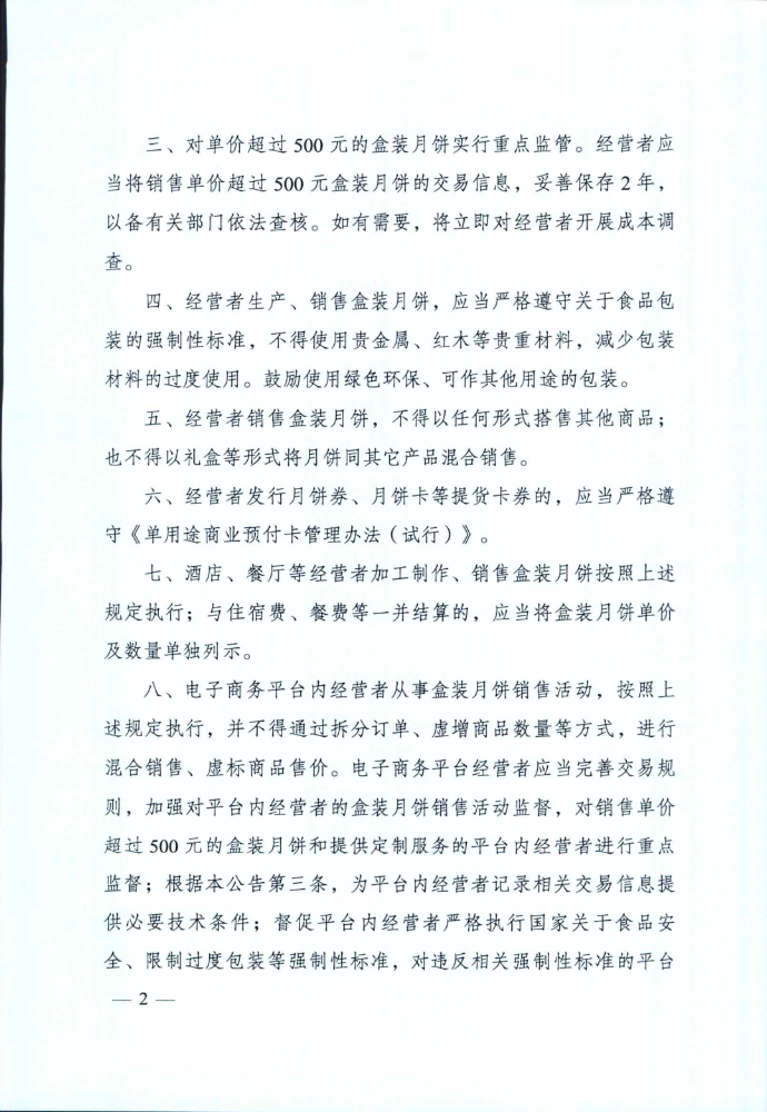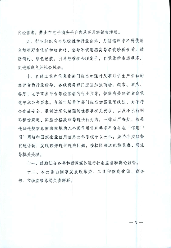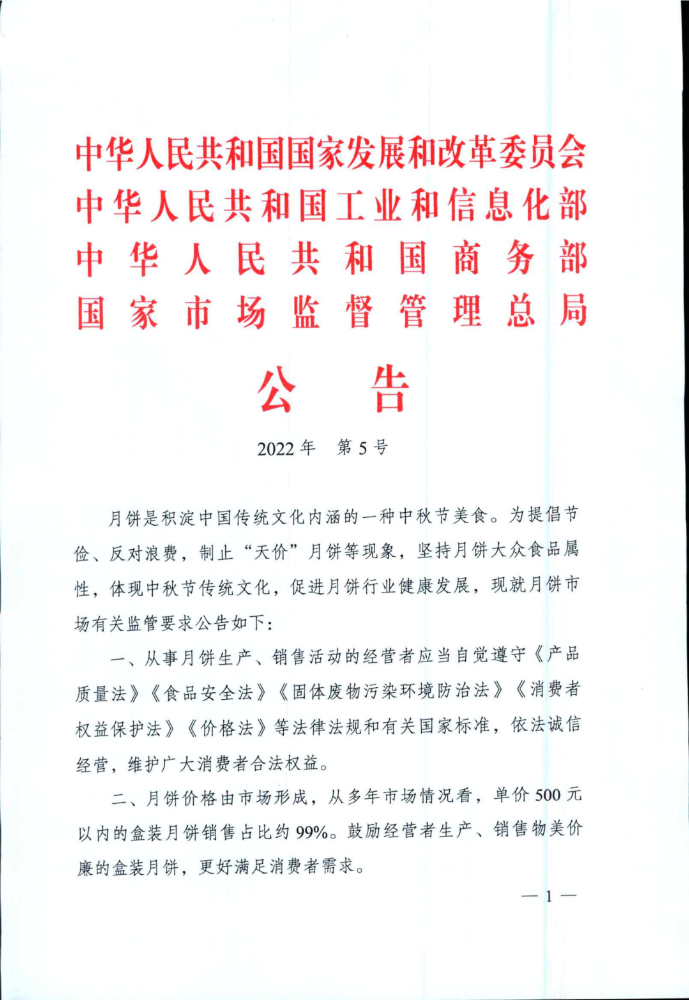 市场监管总局等4部门发布月饼市场有关监管要求的公告