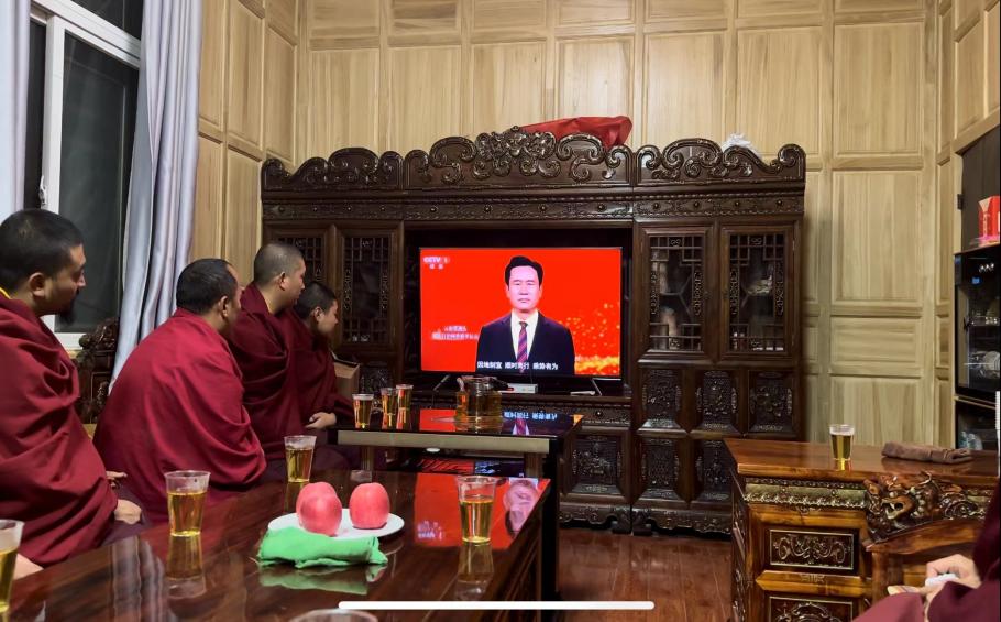 民管会接待室观看收听该节目,在观看过程中民管会成员及僧人代表认真听取特别节目讲述的十年来具有代表性的民族团结进步故事,新时代党的民族工作创新发展的伟大成就。香格里拉市委书记扬梓江在接受荣誉牌时会场响起热烈的掌声并热烈祝贺。