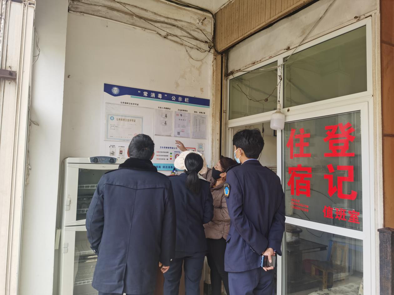 此次检查主要围绕公共场所疫情防控工作:一是公共场所入口处是否张贴场所健康码、行程码,严格执行健康码扫码查验;二是从业人员及进出人员是否佩戴口罩,并测量体温进行登记;三是店内大厅前台办理入住手续处是否设置一米线距离;四是公共场所是否详细登记进出人员信息;五是公共场所放置的消毒用品是否合格;六是要求从业人员一经发现高中风险地区入香、健康码扫码为黄码和红码人员,必须立即向居住地社区或防疫部门进行报告;七是与公共场所负责人签订《疫情防控承诺书》,要求引起高度重视,严格按照通知认真做好各项工作。