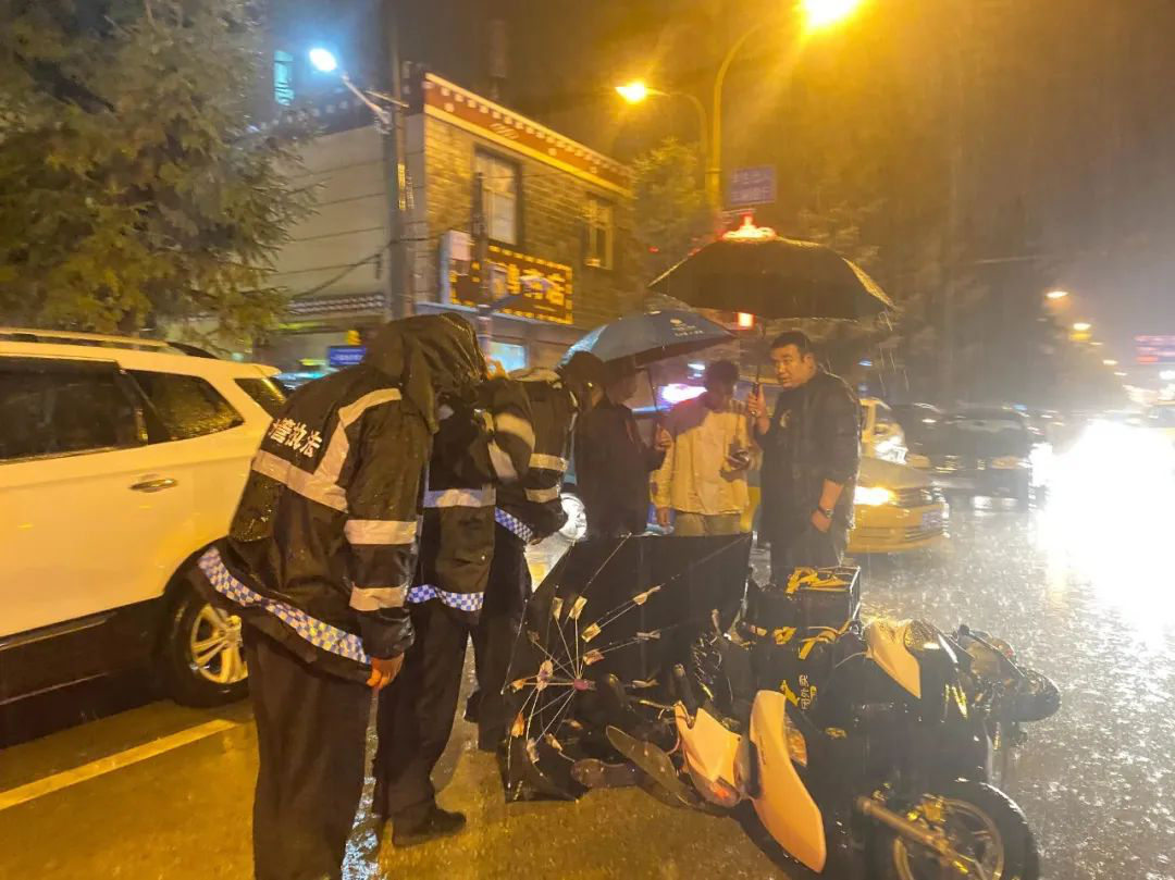8月6日晚,香格里拉市综合行政执法局执法人员在开展整治独克宗古城工作路途中,行至建塘路与思给洛巷交叉路口时偶遇一起交通事故。执法人员到达现场时,当事人因腿被撞伤痛苦地躺在雨水中,无法起立。因交警和120救护车还未到场,无法确定事故性质,周边行人及车辆不敢贸然施救。