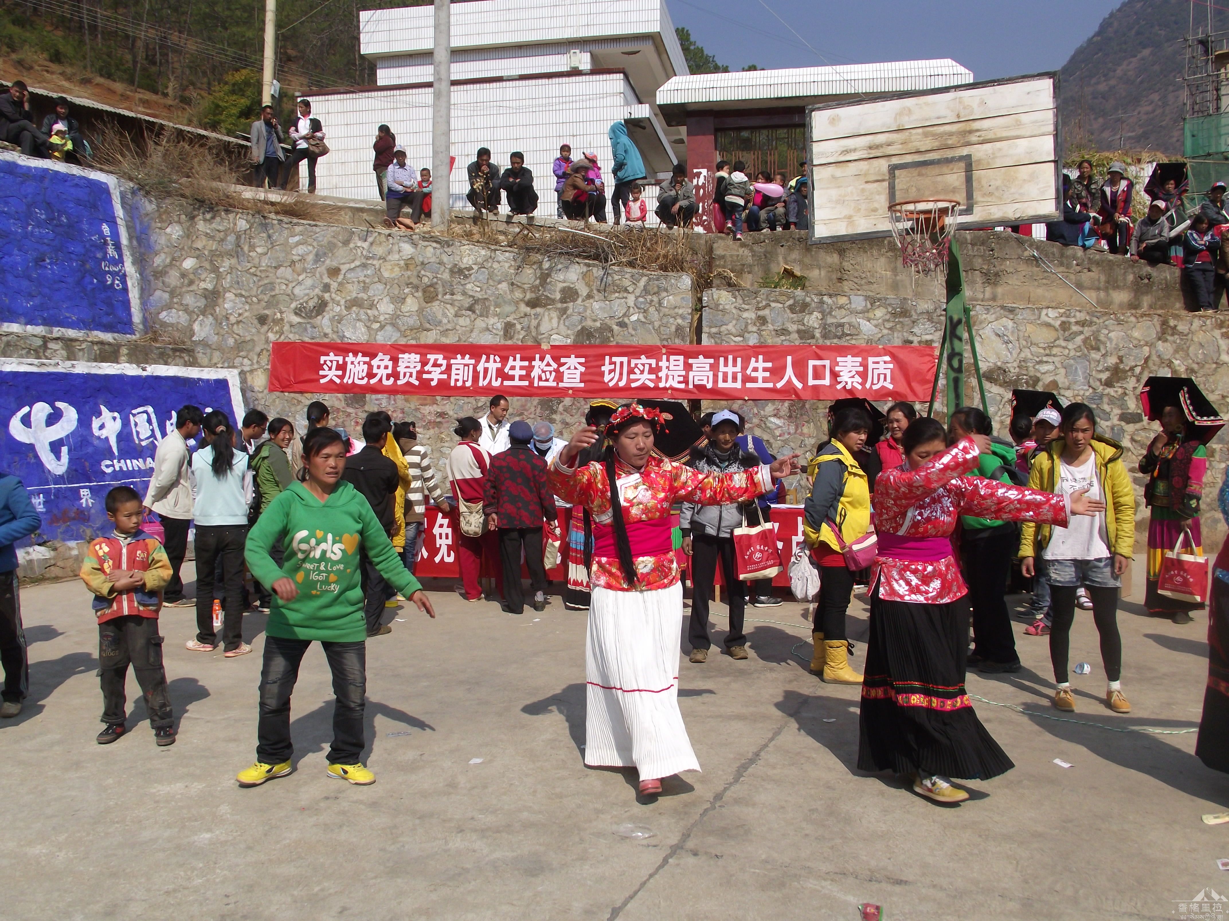 洛吉乡人民政府驻地篮球场上人群熙攘,欢声笑语,洋溢着浓浓的节日气氛,听说州、县计生部门在此开展活动,身着盛装的当地同胞早已等候在此。