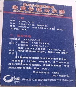 香格里拉县发改局积极开展旅游市场价格专项检查。重点检查了各旅游景点门票及服务项目执行政府定价情况,旅游产品的价格是否做到明码标价。先后对普达措国家公园、蓝月山谷、松赞林寺等景点进行了检查。首先查看旅游公司是否落实对各景点门票及收费项目价格的公示,要求旅游公司规范管理,做到门票价格及服务收费项目价格明码标价;由于各涉旅购物店及藏民家访都处于停业整改阶段,工作组便来到涉旅购物店协会和藏民家访协会,宣传价格法规,给他们下发《香格里拉县发改局关于规范旅游价格秩序的通知》,要求他们将文件及时发放至各藏民家访和购物店经营户手中,要求经营者张贴价格,明码标价,并加强管理,充分发挥协会的作用。推行旅游景点门票及服务收费价格,涉旅行业价格全面公示,让游客在消费时,做到心中有数。