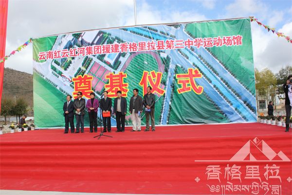 在这秋高气爽、景色迷人的季节里,香格里拉县第三中学全体师生迎来了一个吉庆的日子,由红云集团“兴边富民工程”对口帮扶资助的香格里拉第三中学体育场馆奠基仪式在香格里拉三中篮球场正式举行,