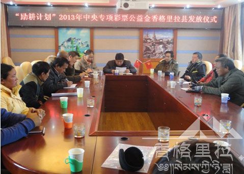 仪式上受助教师代表致感谢辞,香格里拉县教育局领导在现场将每人一万元的公益金发放到了受助教师手里。