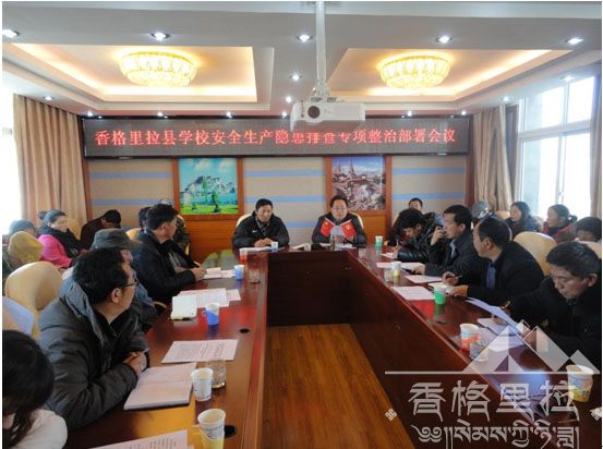 在“1.11”古城火灾发生以后,2014年1月16日上午10:00在香格里拉县教育局三楼会议室召开了全县学校安全生产隐患排查工作部署会议。会议由香格里拉县教育局局长和绍东局长主持,全县各中小学、幼儿园校(园)长,教育局全体职工参加了本次会议。