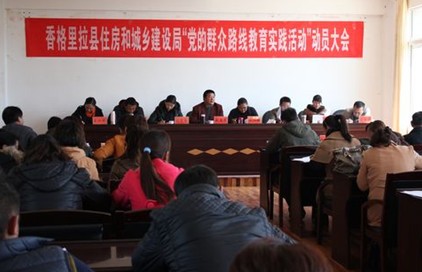 为认真贯彻落实中央、省、州、县深入开展党的群众路线教育实践活动要求,确保住建局教育实践活动扎实有序推进,香格里拉县住建局于2月25日组织召开党的群众路线教育实践活动动员大会,局机关、供排水公司全体干部职工共及退休干部代表61人参加了会议,县委教育实践活动第六督导组及联系领导出席会议并作指导讲话。