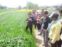 为提高小麦科学种植管理水平,实现增产增效,增强小麦种植户创建高产意识,确保小麦高产创建项目的顺利实施。目前正值小麦拔节的关键时期,香格里拉县农广校紧紧抓住农时深入田间地头举办阳光工程“小麦高产创建技术培训班”,金江镇农科镇站长张映彩现场为农民讲解小麦高产栽培技术和各生育期肥水管理知识和病虫害防治知识,培训采取集中讲解和手把手、面对面现场指导。