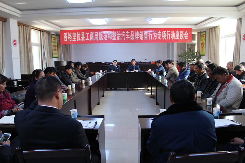 随着汽车市场的繁荣,汽车交易中的一些不规范行为也随之出现。日前,香格里拉县工商行政管理局召集县城汽车品牌经销商组织召开“香格里拉县工商行政管理局规范和整顿汽车品牌销售行为专项行动座谈会”。