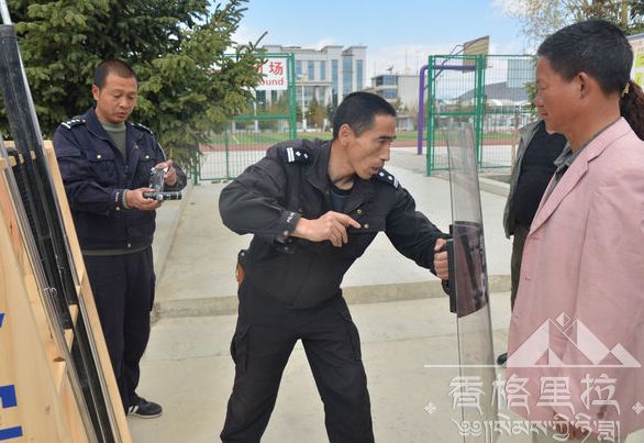同时,香格里拉县公安局向学校赠送了齐眉棍、警棍、防爆叉等安保器材,特警队员还就如何依法、规范、有效使用各类安保器材进行了现场示范,并对学校保卫科成员进行了培训。