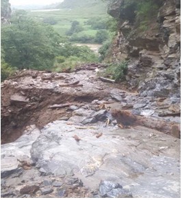 2、7月15日,仓觉村龙扎各村民小组通组公路,大雨导致山沟河水暴涨,冲毁河桥2座,路基大面积塌方,1500米通组道路被冲毁,通组公路被阻,严重影响了村民正常的生产生活。