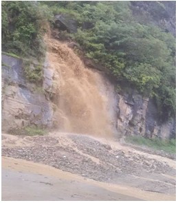 6、7月16日,仓觉村吉史卡村民小组通组公路,山体滑坡导致路基塌方50米,通组公路被阻100多米。