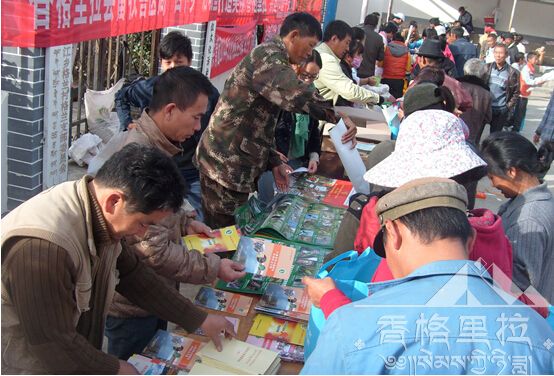 近日,为强化群众森林防火意识,让防火观念深入人心,上江乡林场(站)借助香格里拉县学习宣传十八届四中全会精神送“文化、科技、卫生、法律”四下乡活动,与香格里拉县林业局一起开展以“森林防火人人有责”为主题的宣传活动,并发放《林农防灭森林火灾安全手册》、《云南省乡村森林防火应知应会手册》等相关宣传手册500余份、野生动物保护宣传画帖400余份。(杨海霞)