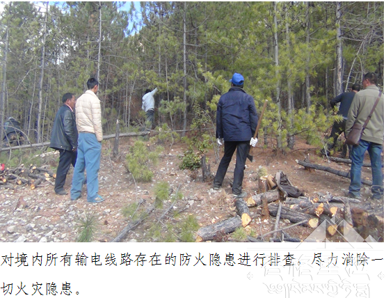 尼西林场 (站) 加强日常巡护工作,要求管护人员在巡山巡护时认真排查火灾隐患,一旦有隐患和火情,及时向场部汇报,并及时组织处理。目前220千伏、110千伏、10千伏、35千伏输电线路通道内普遍存在林木高于导线的情况,将对我乡的防火及林政工作带来极大的压力和隐患。