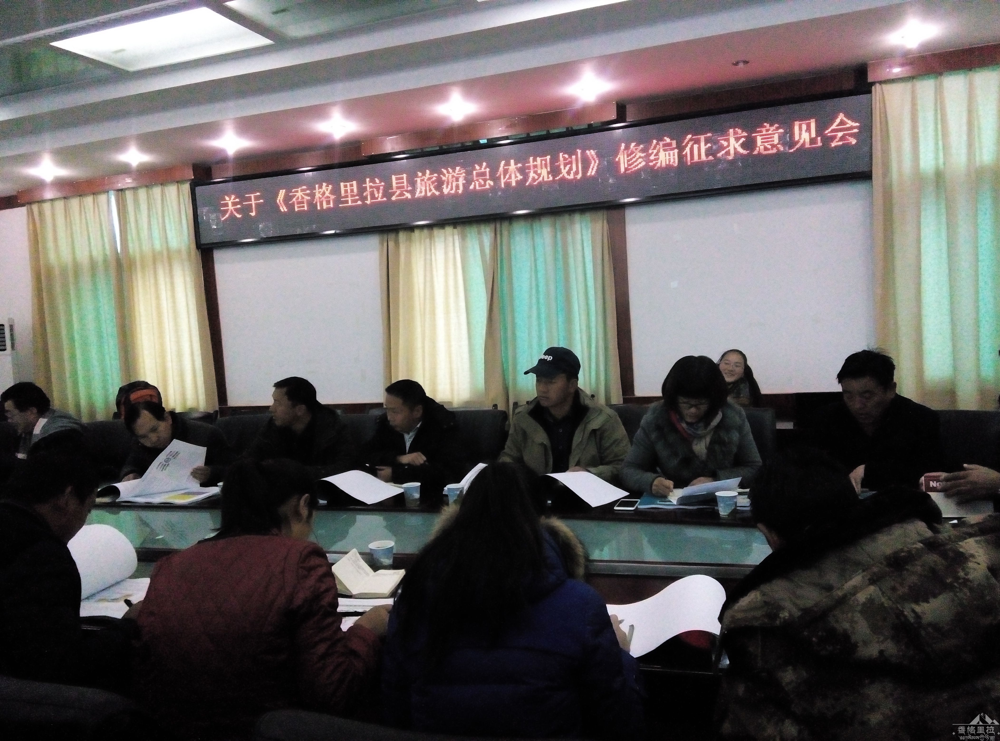 《香格里拉县旅游总体规划》(修编)及《阳塘措旅游区总体规划》征求意见会议于12月18日在县人民政府召开。原香格里拉县外事和旅游局局长刘志光同志主持会议,副县长杨晓红同志、规划、林业、国土、环保、文体广电、旅游等部门负责人、全县十一个乡镇负责人出席会议,大家共聚一堂,为香格里拉旅游产业发展谏言献策,共同描绘香格里拉旅游新蓝图。