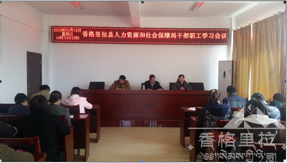 3月18日下午14:30,香格里拉县人社局召开全体干部职工大会,总结春节期间的值班情况,查看人员收假到岗情况,并安排部署当前工作。