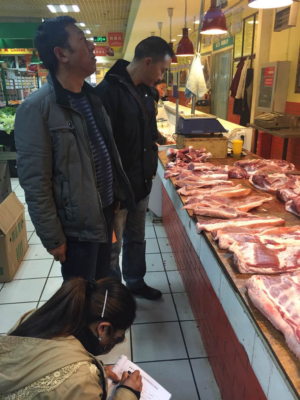 为加强猪肉市场检查,进一步规范食品市场,维护广大消费者的合法权益,防止食品安全事件发生,t香格里拉县综合行政执法局于2015 年3 月19 日组织环保农牧水务执法大队的五名执法人员,对县城区内三个农贸市场(建塘农贸市场、无公害市场、向阳路三农贸市场)、天顺时代广场的重点地区肉食品进行检查,重点检查三个农贸市场的肉摊点是否有检疫合格证明。