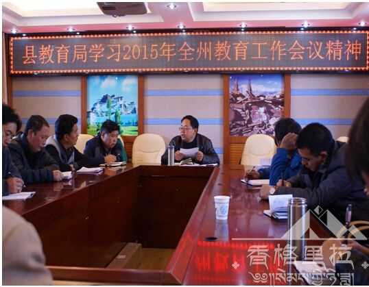 会上,传达学习了州教育局党委书记、局长冯金祥同志关于题为《以办人民满意的教育为己任 全面深化教育改革 促进迪庆教育全面发展》的讲话。内容从三个部分全面总结2014年教育工作,安排部署了2015年教育改革发展各项任务。第一,求真务实、开拓进取、2014年全州教育事业全面发展;第二,立足州情、把握实质,统筹谋划迪庆教育改革发工作;第三,攻坚克难、提质增效,全力推进迪庆教育科学发展。