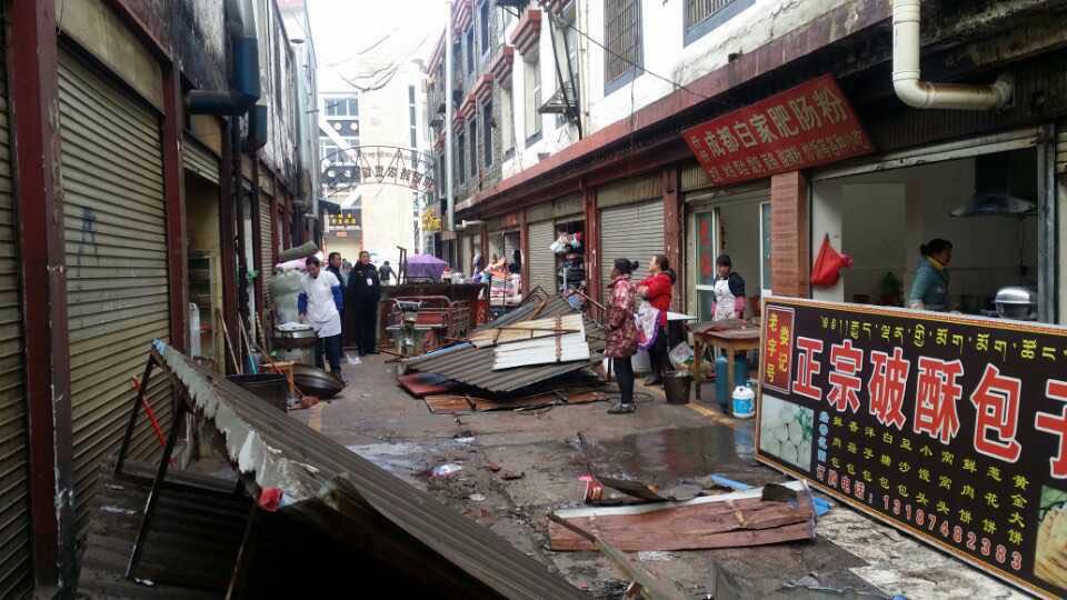 2015年4月1日,香格里拉县综合行政执法局城市管理执法大队针对农贸市场附近摊贩占道摆卖经营问题,开展集中清理活动。