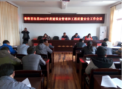 香格里拉县住房和城乡建设局于2015年4月14日下午在三楼会议室召开全县建筑业管理和工程质量安全工作会议,全县建设、施工监理企业及部分甲方代表共100人参加了会议,会上,党委书记孙建国同志就本次建筑业安全和质量做重要讲话,对2014年全县建筑业工作进行深刻的分析和总结,总结出建筑业方面的不足及隐患,并对2015年工作进行了安排布置。会议强调将继续整顿和规范建筑市场,严把质量关,保证安全施工。