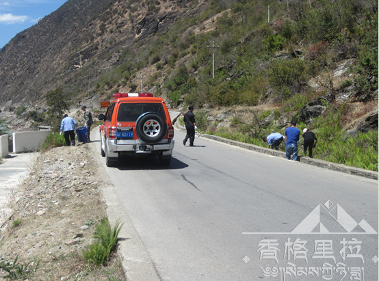 为响应香格里拉撤县设市的要求,在五境乡党委政府的统一安排下,五境林场(站)全体职工于4月16日至18日对香维公路总长5公里进行为期三天的大扫除,为了美化、优化环境,同志们不怕苦不怕累,冒着烈日把公路沿线的卫生死角清理得干干净净,为创设一个环境卫生高质量的乡镇而不懈努力。(格桑)