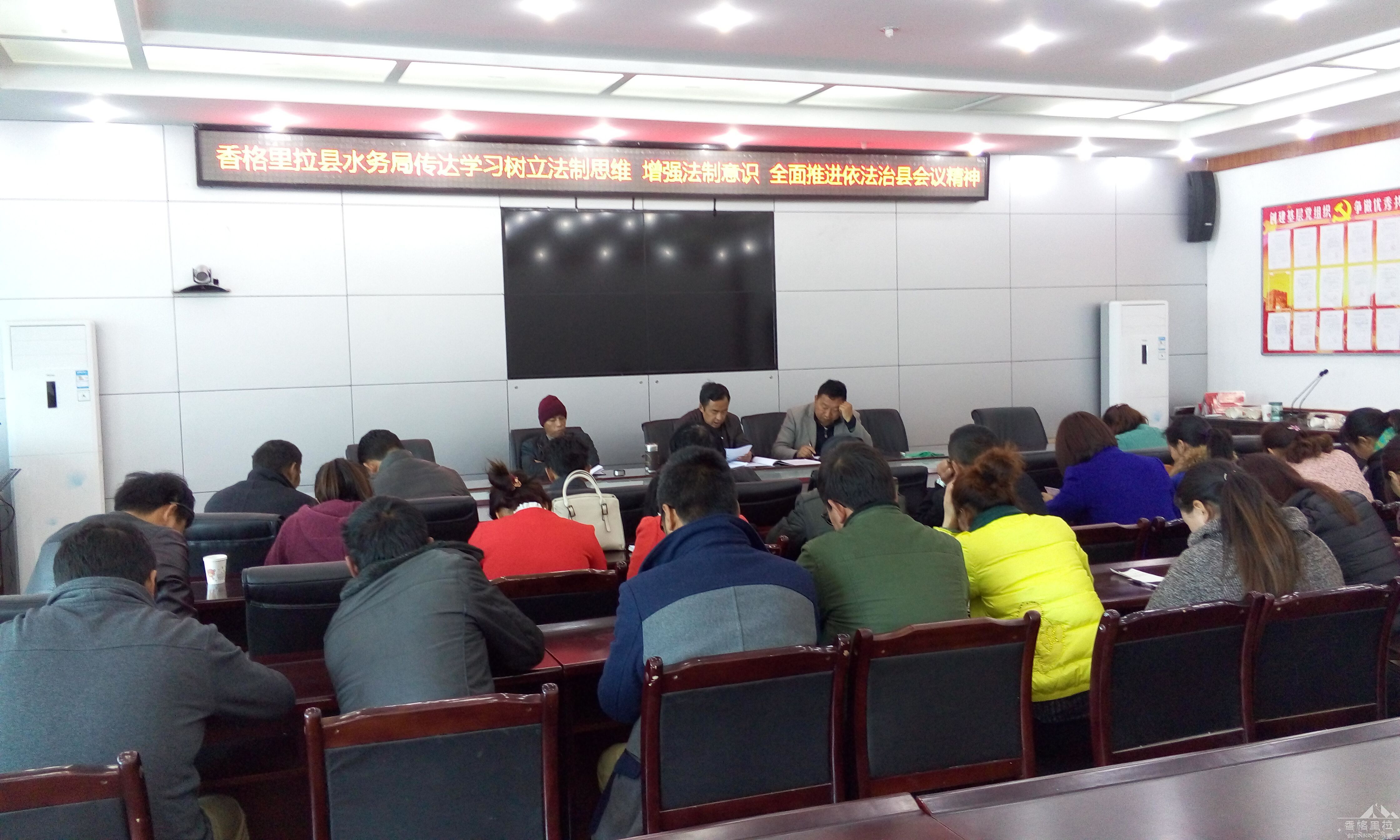 近日,我县全面推进依法治县研讨班成功举行。培训班结束后,县水务局立即召开局务会议,研究制定具体贯彻会议精神的学习安排,并于4月20日组织召开全局干部职工大会,迅速传达贯彻全面推进依法治县研讨班会议精神,集中组织学习了余胜祥、肖徐同志在香格里拉县推进依法治县研讨班上的讲话和文件精神。
