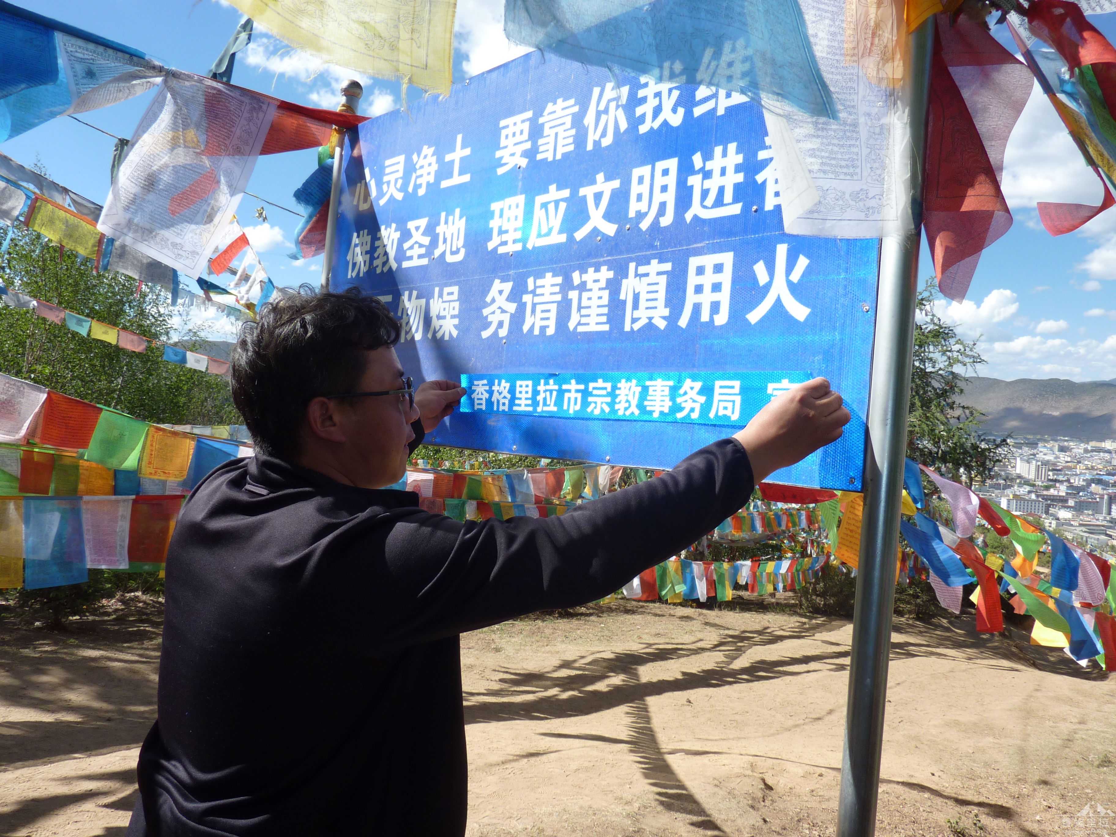 在做好宣传牌更名的同时,我局工作人员对寺院环境及安全隐患进行排查,极力做到视角全面、考虑周到,并对寺院僧侣进行寺院环境提升和安全知识宣传教育,确保我市各宗教活动场所处所寺院环境提升工作做到实处、做到位,共同建设美丽香格里拉。