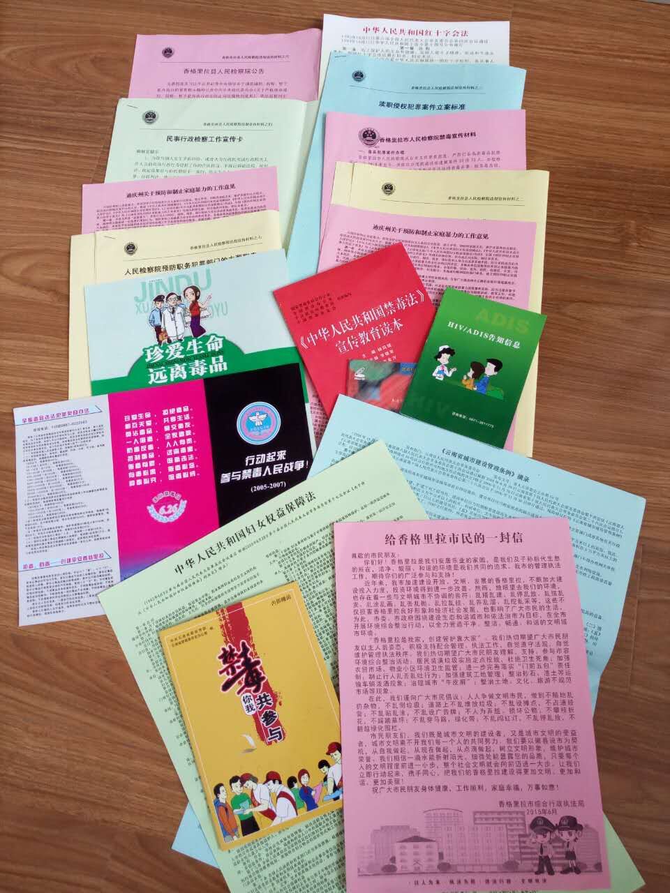 2015年6月26日国际禁毒日,我局同香格里拉市公安局、香格里拉市人民检察院、市妇联、团委、疾控中心等单位在香格里拉市池慈卡街与向阳路交叉口共同进行宣传。