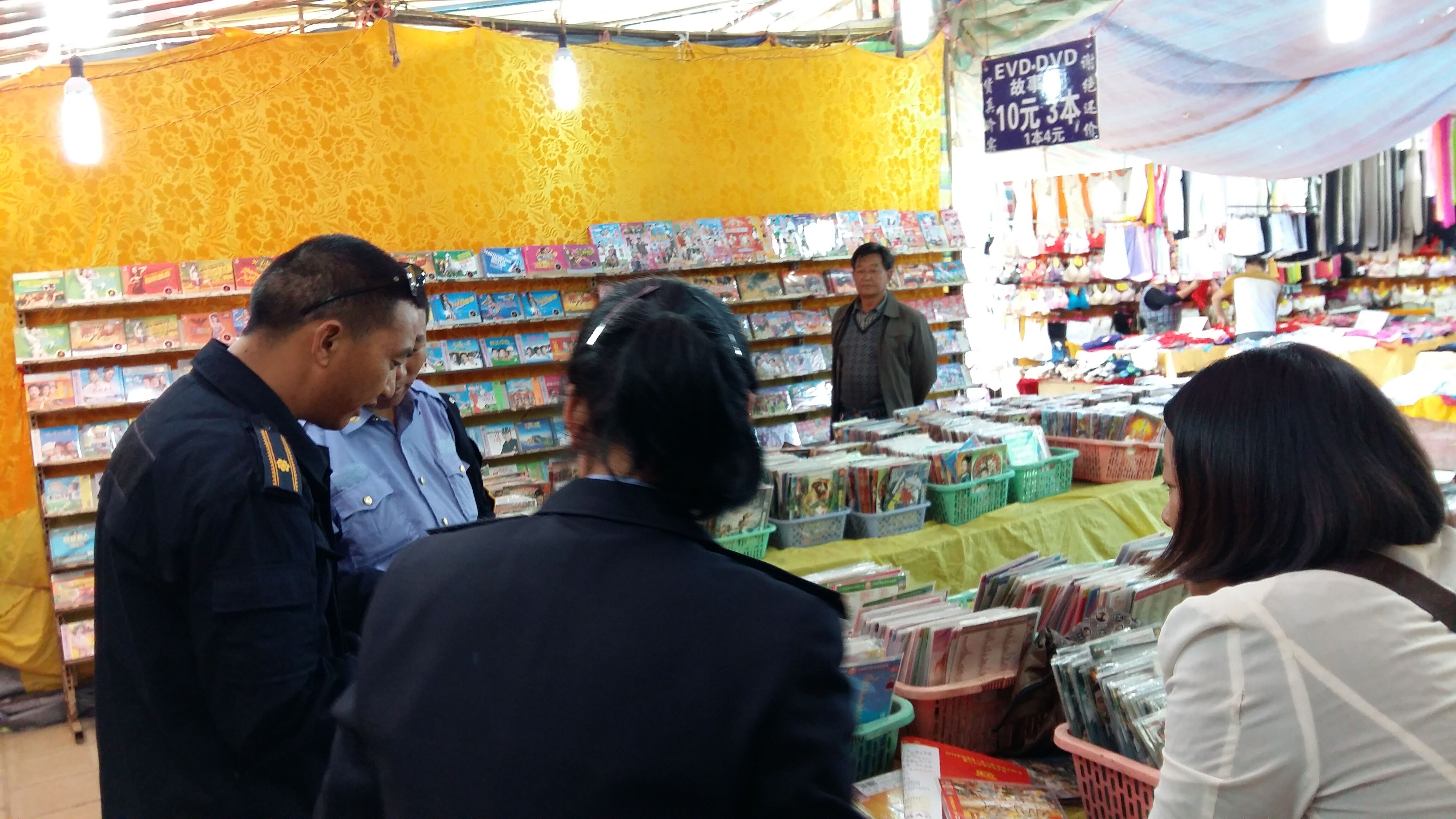 为进一步保护知识产权,打击非法违禁出版物和音像制品,根据《迪庆州“扫黄打非•清源2015”专项行动方案》的通知要求,结合我市“环境综合整治,建设美丽香格里拉”专项整治行动开展,香格里拉市综合行政执法局开展了打击出版物游商地摊集中清理整治行动。