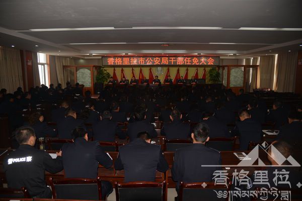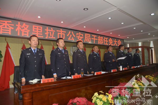2015年7月30日上午,香格里拉市公安局召开干部任免大会,在家党委班子及各所、队、室、城区全体民警参加会议,会议由韩建新副局长主持。