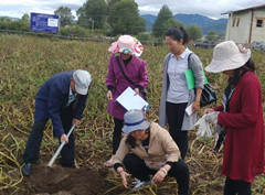 在测产的同时对项目区开挖马铃薯的农户进行查看对比,了解到团结村康斯村民小组:达吾家1亩挖出40公斤装的65袋是最多一家;和平村降给村民小组:拉茸尼玛代表农户向农科局领导一行说:“今年的马铃薯是最好的一年,产量高又好吃,可惜今年村里才种了几十亩,现在党在农村的惠民政策不断增多,各级政府进一步加大在农村的建设力度,农业部门也加强技术、资金支持,农民收入得到了不断提高,村民们更有信心了,明年可能会增加到600多亩,希望得到相关部门的大力支持和党的更多更好的惠民政策”。