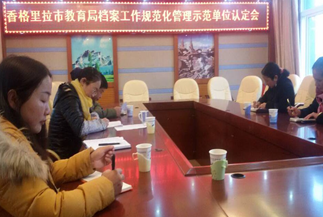 2015年10月15日上午,香格里拉市档案局局长马迎春、档案局副局长张卓玛、杨志权、州档案局业务指导科科长李玉凤、等档案规范化管理认定评审专家组一行9人,到我局就档案规范化管理工作进行了认定评审。我局副局长周庆芳主持评审会,纪委书记杨勇崎进行专题汇报。