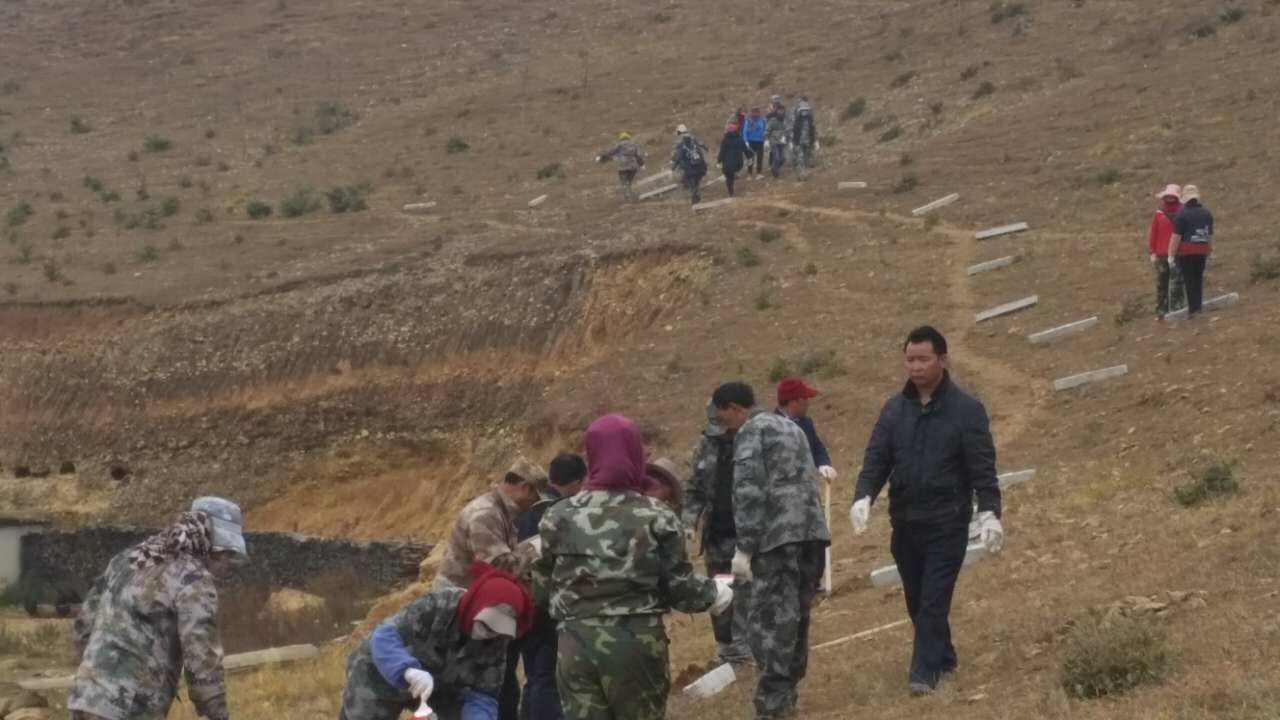 为推动我市进一步筑牢生态防线,加强林地山地保护。针对解放村达拉角村民因界限不明而私挖乱采长期存在这一问题。10月27日,市政府常务副市长鲁志军同志组织综合行政执法局、林业局、国土局、建塘镇人民政府负责人到现场调研,并采纳我局建议,作出调整林地红线的决定。10月31日,在接到建塘林场场长杨红电话以后,我局迅速安排李圣尧、和丽军两名执法人员协同建塘林场全体职工在达拉角面山红线树立了近千根水泥界桩。