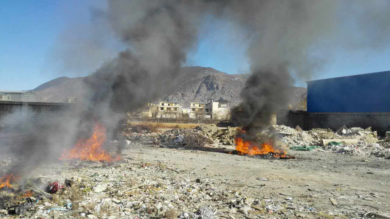 香格里拉市属于海拔3000米以上的高原地区,由于空气氧分压低,呼吸进入人体的氧也相应减少,冬季尤甚,因此保护好香格里拉市的空气质量是一项不可忽视的重要工作,而随着社会经济的不断发展,影响空气质量的因素也增多,影响我市空气质量的主要因素有,工业废气、汽车尾气排放、垃圾焚烧、居民取暖等,针对这些因素香格里拉市综合行政执法局环保林业执法大队对全市的建筑工地、有排放烟气的企业,加大日常的巡查检查工作,2015年11月12日巡查至建塘镇北郊社区左瓜村民小组一建筑工地时,发现一名工人正在焚烧废弃的三轮车胎和建筑垃圾,造成周边空气环境污染,执法人员当场进行制止,及时让工人浇灭燃烧的垃圾堆,并对工地负责人进行了批评教育。