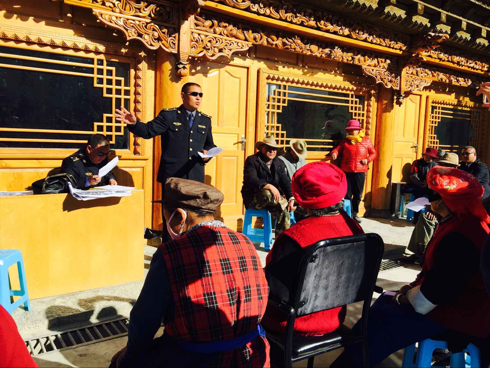 2015年11月1日香格里拉市综合行政执法局城管执法大队由任忠义局长带领城管执法大队执法队员进村、进社区进行宣传活动,此次宣传社区主要有位于城区中心的金龙、仓房、北门、建塘、北郊五个社区以及城区周边尼史、诺西、红坡、解放四个村进行宣传,此次进村进社区宣传活动,综合行政执法局城管执法大队执法队员向市民派发关于禁止牲畜进城的宣传单,并诚邀市民为维护香格里拉市市容市貌建言献策、开门纳谏。