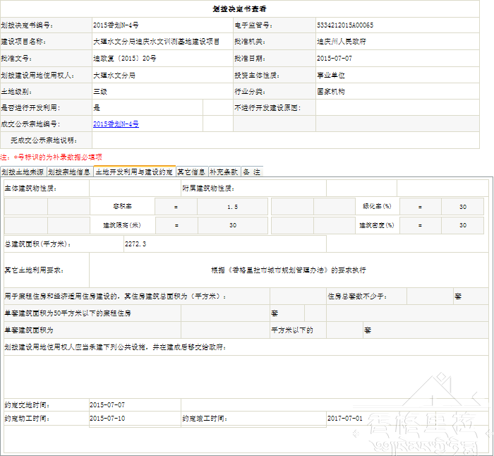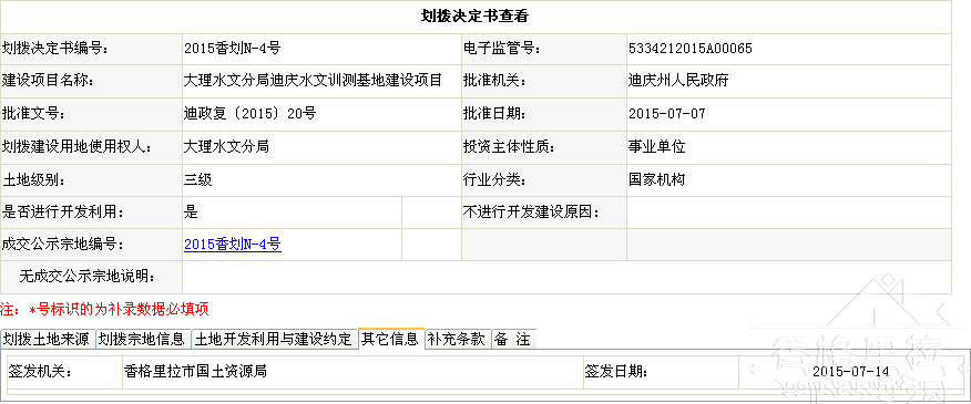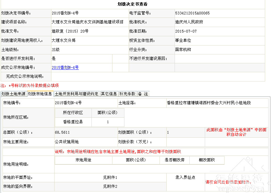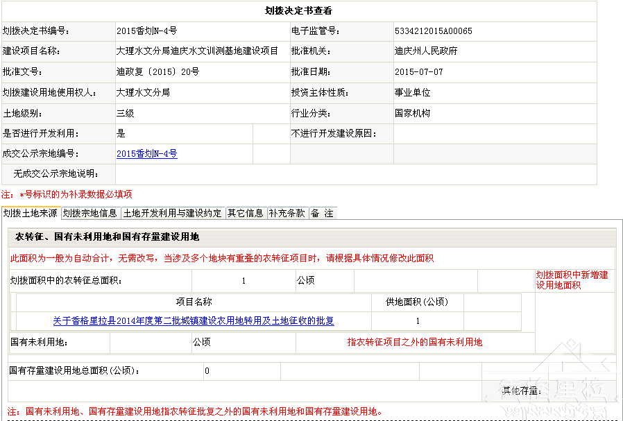 【自然资源局】关于迪庆州无线管理办公室监测站划拨决定书