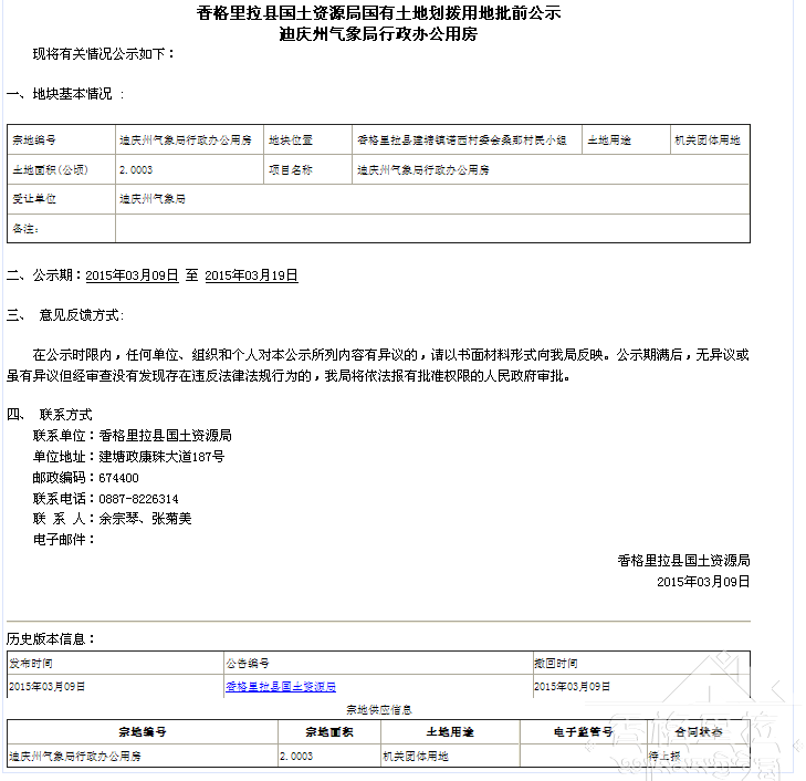 【自然资源局】国有土地划拨用地批前公示-迪庆州气象局