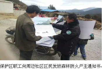 近期,碧塔海省级自然保护区坚持把宣传教育作为森林防火工作的第一道防线,采取“点、线、面”相结合,因地制宜,因人施教,进一步加大了宣传力度,确保森林防火意识深入人心。保护区组织职工向保护区内牧场和周边社区居民发放户主通知书和印有“森林防火,人人有责”的防火水桶,做到早动员,早部署,早安排,坚持“预防为主,积极消灭”的森林防火工作方针。积极引导群众全民参与、全民预防,切实提高了群众对森林防火的重要性和紧迫性的认识。(孙志远)