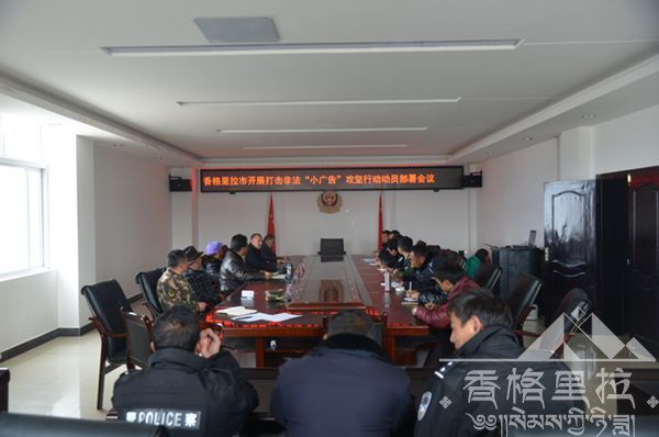 2016年1月27日下午2时30分,香格里拉市公安局组织召开打击非法“小广告”攻坚行动动员部署会议,香格里拉市副市长、公安局长和向荣参加会议并做重要讲话,市委政法委、市人大、市政协、武警迪庆支队、保安公司及市公安局各部门主要负责人参加会议。