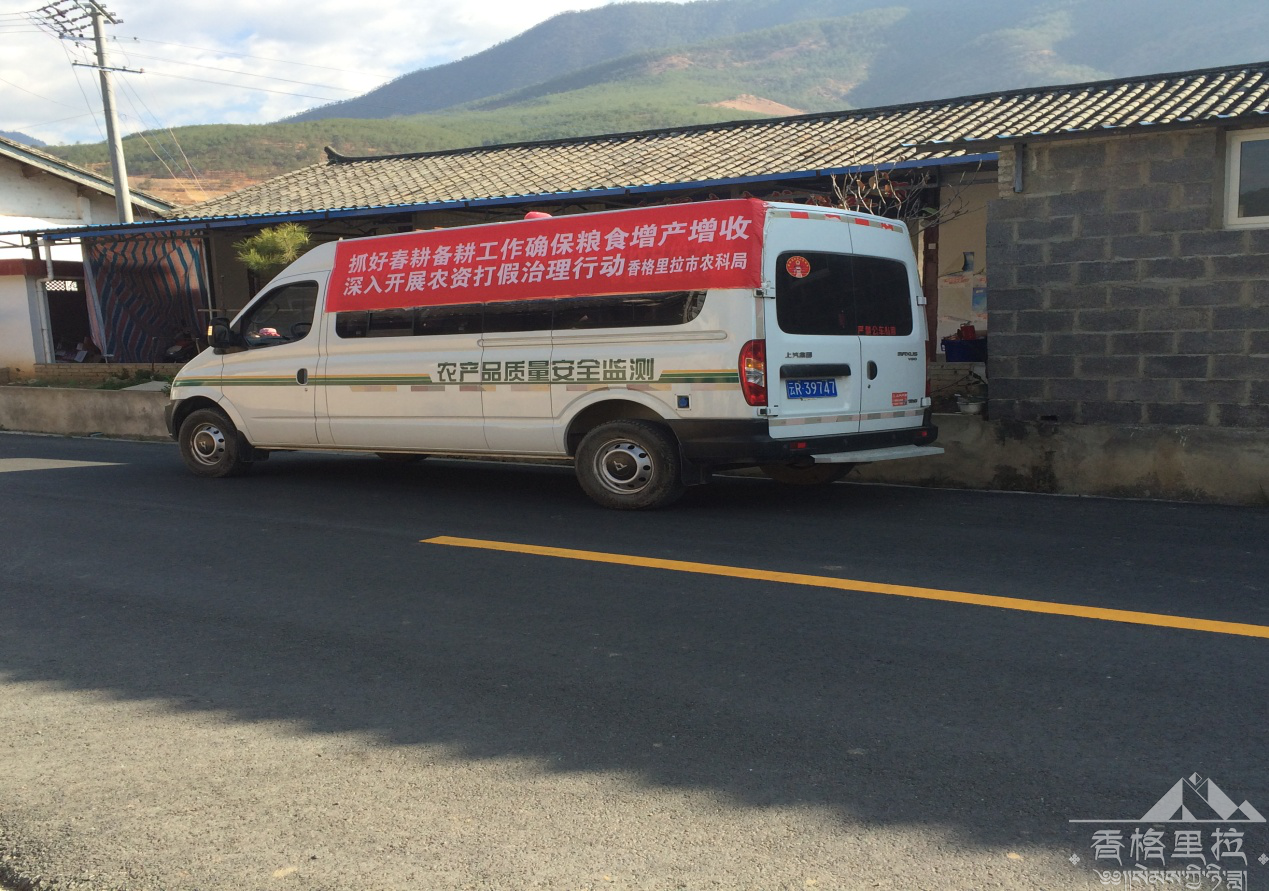 2016年3月2日至3月5日,香格里拉市农科局由张正德主任带队,各站所负责人参加,对香格里拉市建塘镇、小中甸镇、虎跳峡镇、金江镇、上江乡、五境乡、尼西乡等进行春耕备耕检查及农资打假专项治理行动。通过抽查30家农药、种子、农膜化肥经营户,没有发现假冒伪劣产品。同时对近年来农资游商游贩较多的乡镇,开展专项整治,宣传法律法规,发放资料200份。深入开展农资打假工作,是贯彻落实十八届五中全会,“创新、协调、绿色、开放、共享”发展理念的需要,是实现“十三五”农村全面小康目标的需要,也是推进依法治农、依法兴农任务的需要,为促进农业增产增效营造更有利的农资市场环境。