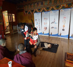 随着经济社会的发展,人民生活水平的提高,“关爱生命、维护健康、自救自护、减少伤残”的理念,已越来越受到人们普遍关注,群众渴求更多的健康知识和防灾避险技能。3月11日上午香格里拉市红十字会会长和建英亲自带队到我市承恩寺进行高原突发疾病急救知识讲座,全体驻寺工作人员及全寺教职人员积极参加了培训。