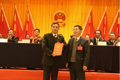 1月22日下午,香格里拉市第一届人民代表大会第一次会议胜利闭幕,香格里拉市人民法院党组书记、代院长李学全全票当选香格里拉市人民法院院长,当选后,李学全院长向宪法宣誓就职。