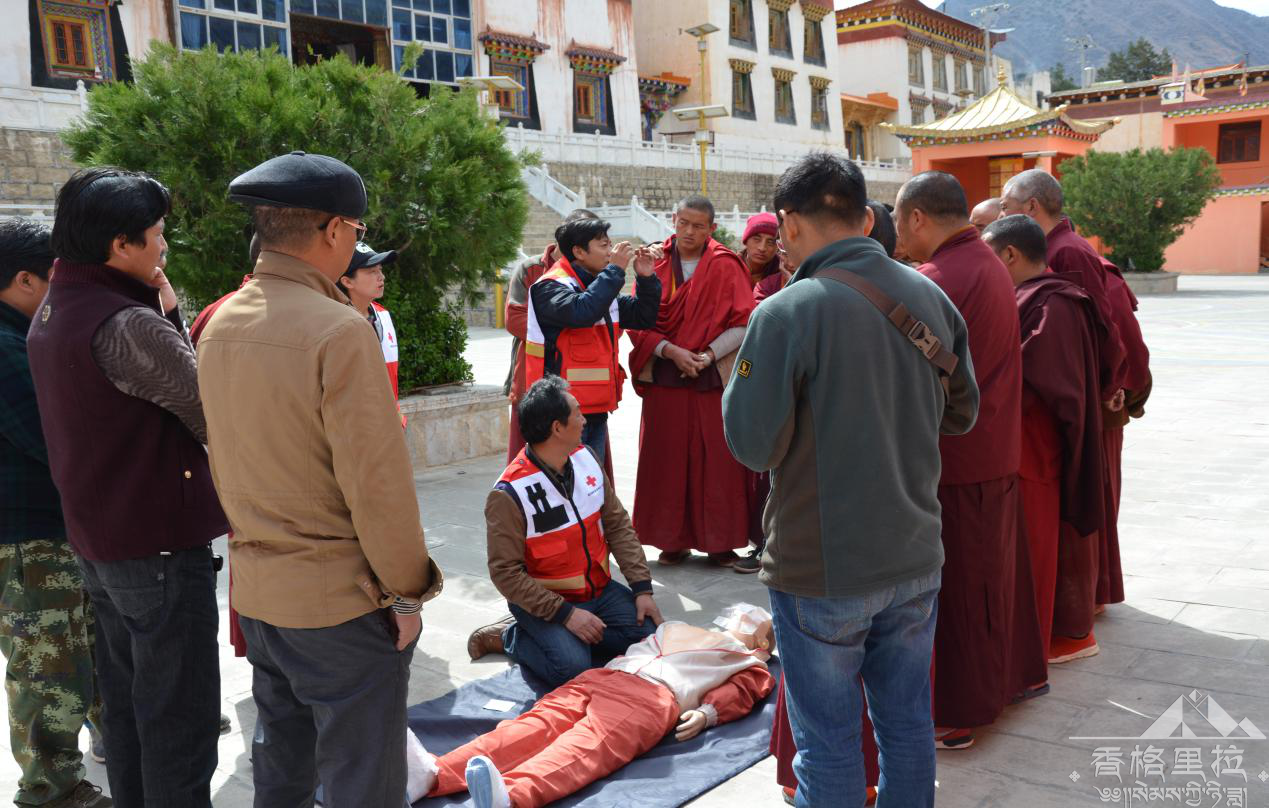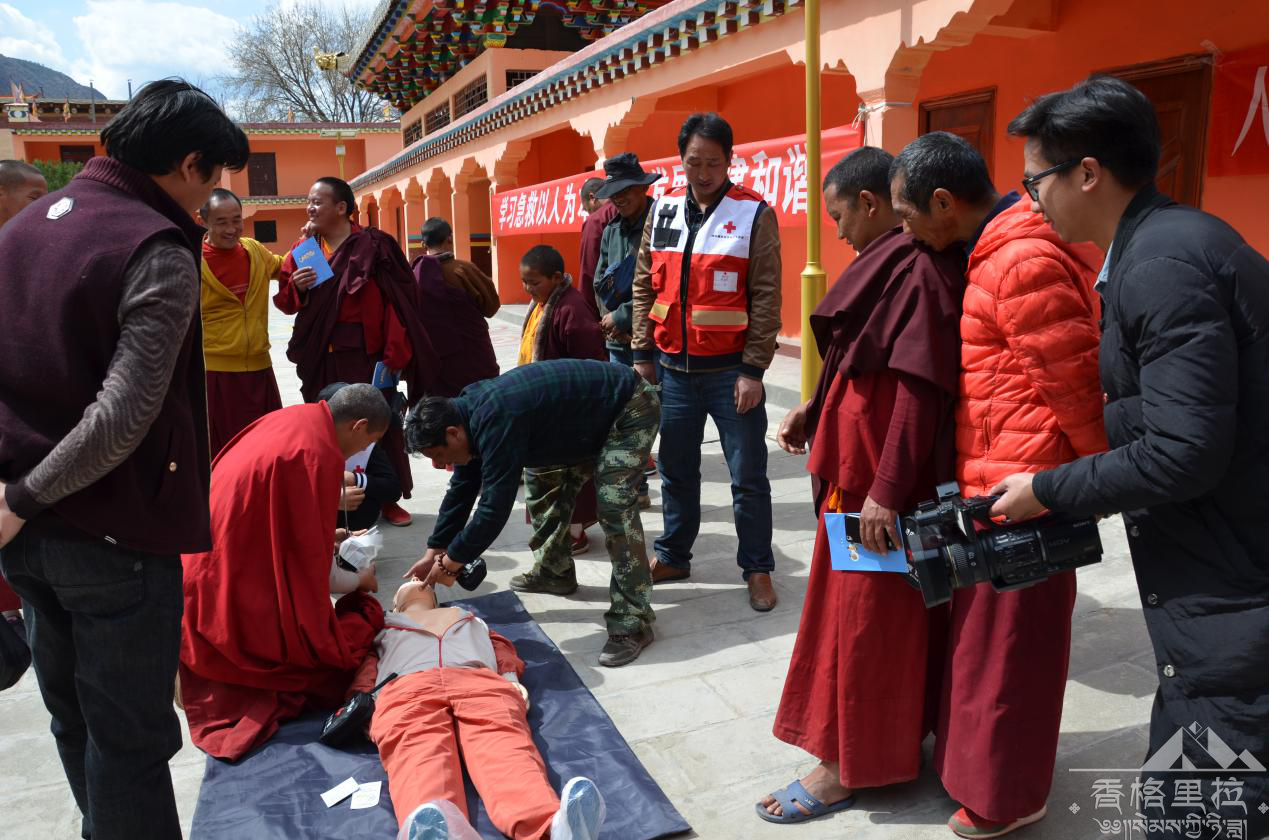 3月17日早上9点,云登寺、归斯寺驻寺工作组协同州红十字会工作人员前往云登寺,召集在寺僧众深入开展急救知识宣传活动。