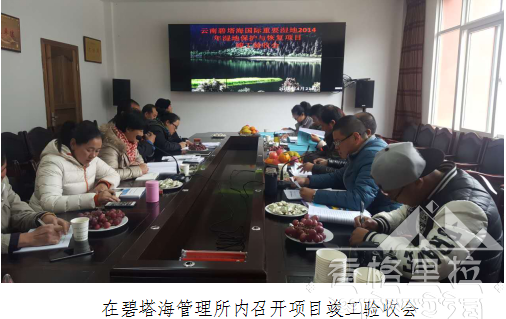 2016年4月21日,由迪庆州发改委、州财政局、州林业局组成的湿地项目验收领导小组专家一行到碧塔海省级自然保护区参加云南碧塔海国际重要湿地2014年湿地保护与恢复项目竣工验收。