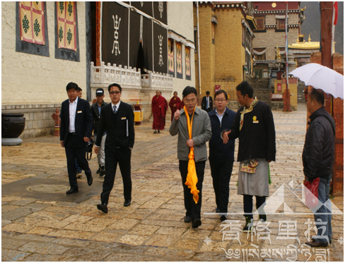 督查组在我景区领导的陪同下,还到寺院各大殿中观光祈福。景区讲解员为督查组一一讲解了松赞林寺的历史、寺院的主要结构、藏传佛教来源及历史、宗教禁忌、藏传佛教与其它宗教的差异以及整个寺院的游览方式。