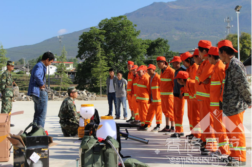 此次培训邀请了迪庆州森警大队的2名教官,培训内容主要有灭火战术、林火扑救安全知识、避险常识、队列队形、灭火机具的使用等。在培训过程中,教官针对森林火灾中会出现的安全隐患,怎样应对火灾中出现的突发情况等方面进行理论培训,教官围绕着“听从指挥”、“心理素质”、“团队意识”等方面把专业系统的培训知识与实际案例相结合,向扑火队员进行通俗易懂的讲解,让队员理解安全的重要性。教官们还采取理论讲解结合现场实际指导的方式,对油锯、风力灭火机、灭火水枪等灭火机具的使用、常见故障维修及保养等内容进行详细讲解,同时要求新老扑火队员都能熟练掌握灭火机具的使用,确保在火灾实战中能及时、高效、安全的完成任务。在为期3天的培训中,队员们从最基本的灭火机使用技术及队列集合等基本知识学起,不但学到了森林防火的真本领,也增强了对森林防火工作科学规范性的认识。