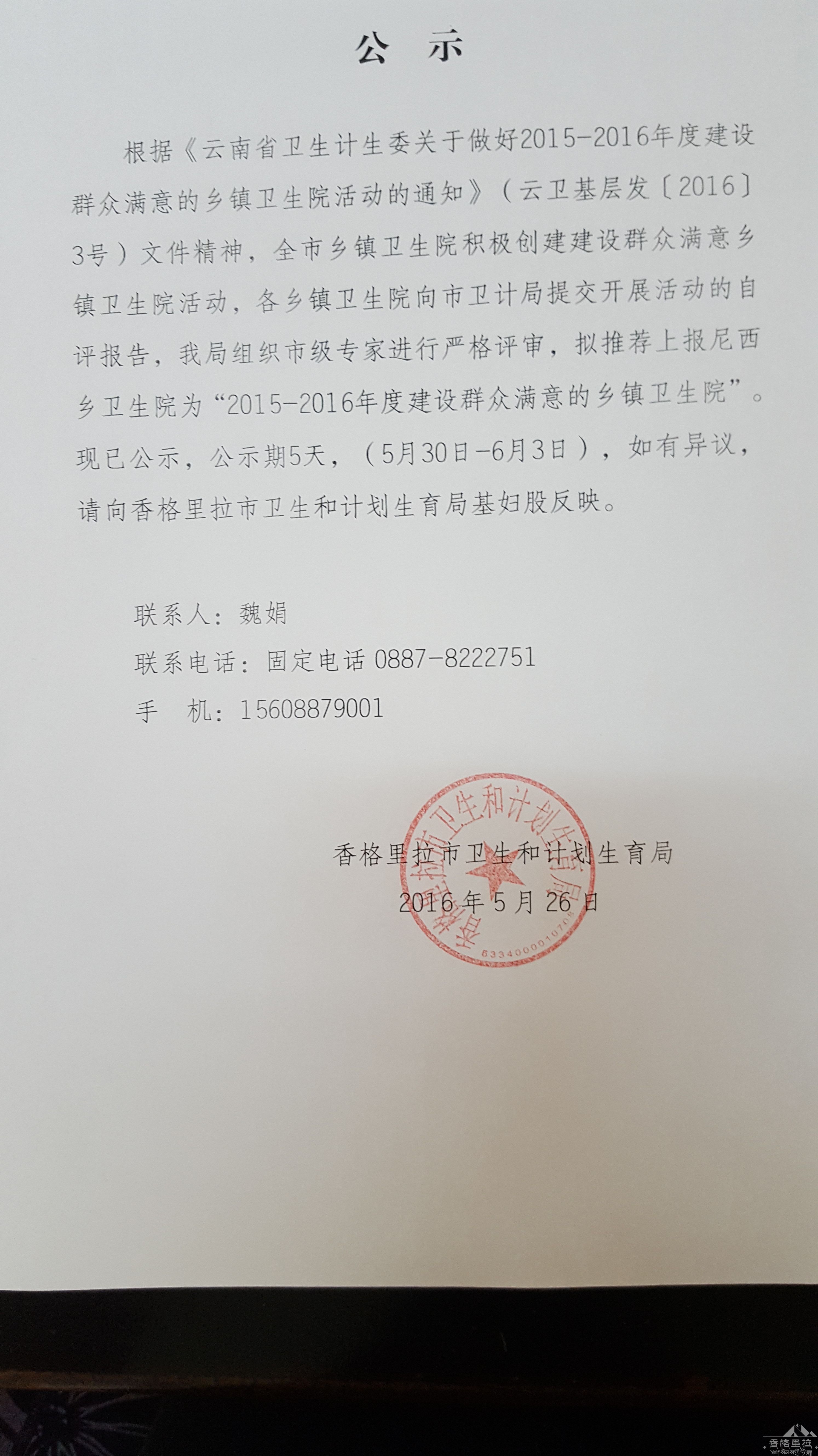 【卫生健康局】公示(2015—2016年建设群众满意的乡镇卫生院)